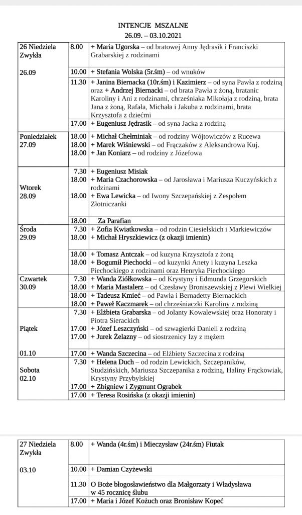 Intencje mszalne 26.09-03.10.2021(kliknij)